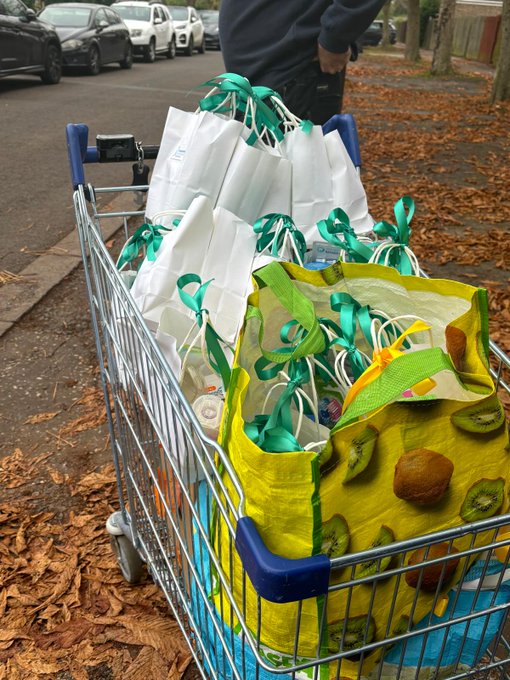 On top of the money we raised at the 9 Nov concert, sweets were delivered to the Ukraine Appeal charity and will be used for the children’s educational camp planned for next year. For the YMCA supported living residents we made up 30 bags of goodies including food, toiletries, cleaning items and a pack each of the Quality street pouches.