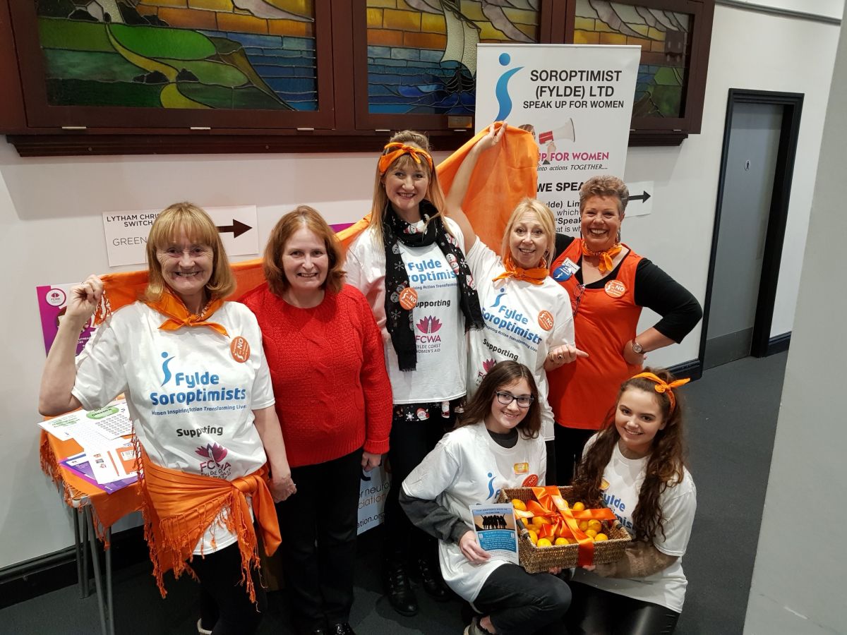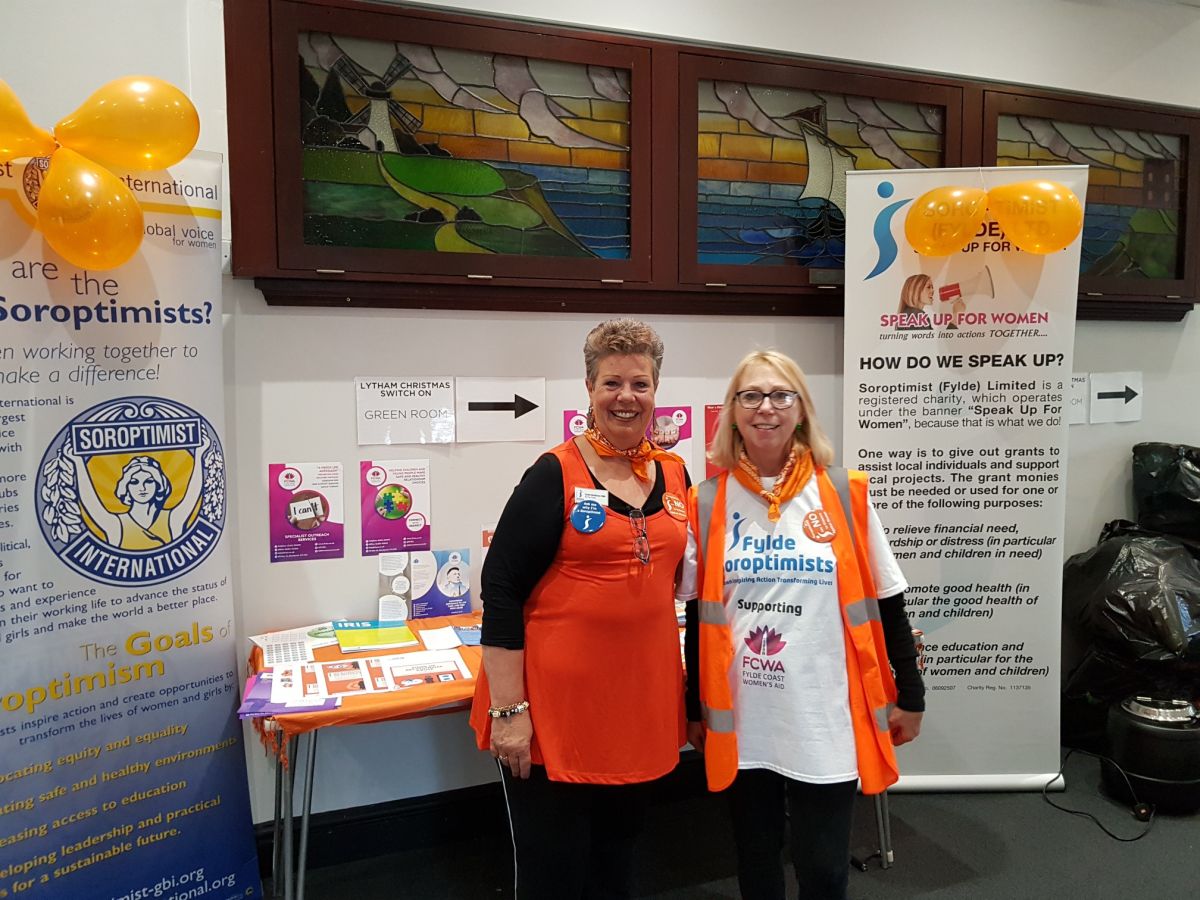 Soroptimists took this opportunity to raise awareness of the “Orange the World” 16 day campaign and also show their support for Fylde Coast Women’s Aid. Members manned a Soroptimist stall and gave out oranges and stickers to highlight the campaign to end Violence against Women.