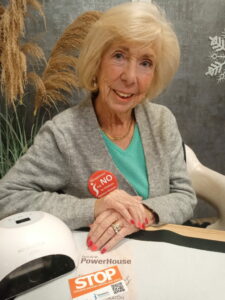 On the way back from the Orange Cafe at the Hub in Whitley Bay, Shirley Hallam Gould popped into the recently opened Onda (Wave) Deli and Coffee House on Ilfracombe Gardens. Thank you to Kris and Laura Campbell, owners, who have always supported the 16 Days of Activism Campaign.