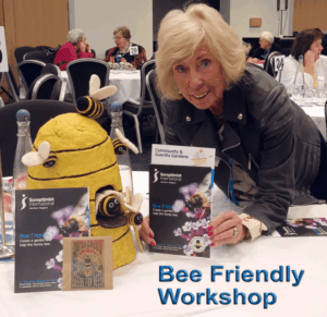 School also participated and the garden grew rapidly to form a focal point for people to visit, admire and count the Bee’s! Linda showed pictures of how the project had developed and how it looked in the full growth of the summer months. A surprise for our members was the gift bags that all SINE attending members received as they left the meeting. This bag contained a list of the flowering plants and bulbs that flowered at different seasons of the year and would provide nectar for the Honey Bees, together with 3 crocus bulbs to plant. Linda had a number of ‘props’ to illustrate her presentation including a beehive which was very colorful.