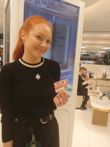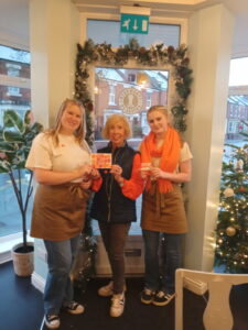 Today was no exception. Shirley spoke to Emilie and Neve about the importance of raising awareness of STOP Violence Against Women and Girls and left information cards for customers.