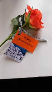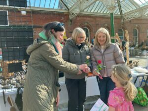 colours and created tie on labels with a message about IWD and their 75th birthday as Soroptimists. Club members then approached individual women in the town centre and presented them with a rose with the reason why they were doing this. They were in great demand and several men had to be refused when it was explained that they were honouring women on this special International Women’s Day. One was given to a working cleaner in the leisure centre who was overcome to be thought of someone special. Club members agreed this was a very successful project to engage with women members of the public and agreed to repeat this next March and to try for sponsorship for the cost of the roses.