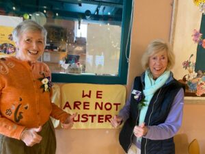 On the way back from the Orange Cafe at the Hub in Whitley Bay, Shirley Hallam Gould popped into the recently opened Onda (Wave) Deli and Coffee House on Ilfracombe Gardens. Thank you to Kris and Laura Campbell, owners, who have always supported the 16 Days of Activism Campaign.