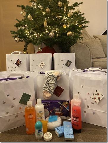 Christine Lowthian – SI Newcastle upon Tyne – has purchased from funds the contents of these beautiful Gift Bags, wrapped and gift tagged,[Photo 4] 25 of them are ready to hand over to the Joseph Cowan Health Care Centre in Newcastle. They will go into quarantine before they are distributed to homeless women in Newcastle just before Christmas. Members of SI Newcastle have been supporting JCHC for twenty two years.