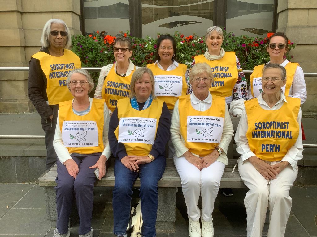 Members of Soroptimist International of Perth gathered today to recognise International Peace Day. The walk started with a little dance of Universal Peace, and then a walk across Queen’s Bridge, Perth followed by a minute’s silence at the Peace Pole in Rodney Gardens before returning to the High Street.