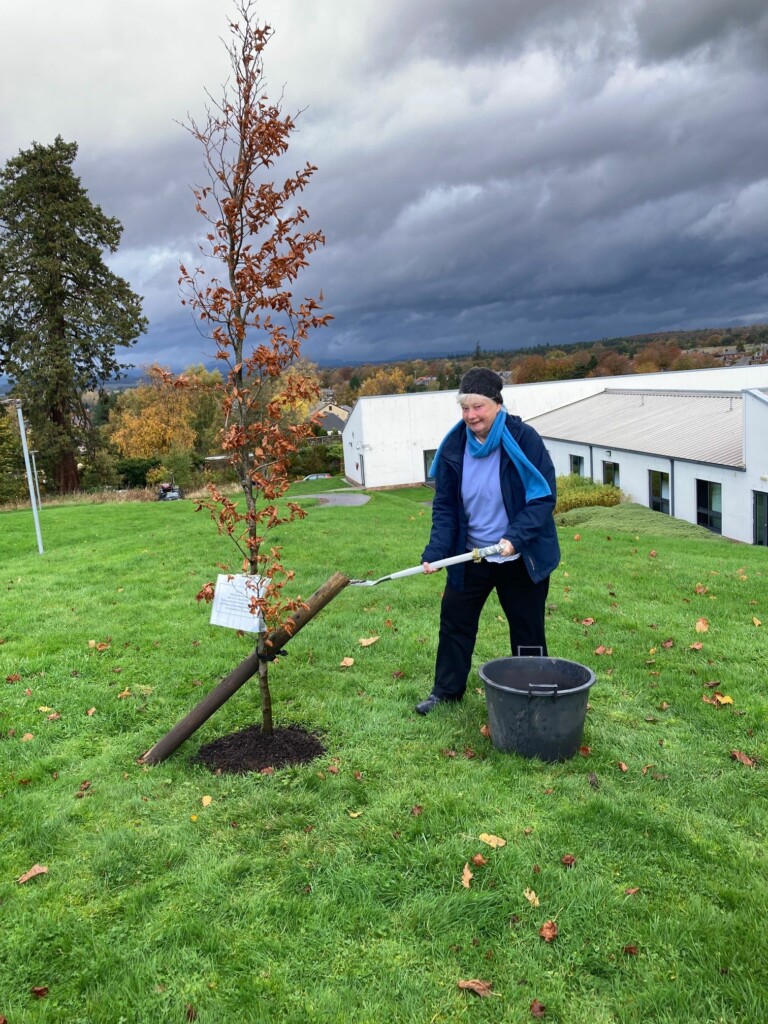 Some members of S.I. Perth gathered on the morning of 27th Oct. 2022, to plant a commemorative Copper Beech tree in the grounds of Murray Royal Hospital. Anne Smart M.B.E. was a well respected and dedicated member of Soroptimist International of Perth for 58 years travelling the World to various Conferences and Conventions and was Matron of Murray Royal Hospital for 21 years. The ladies were joined by Anne’s niece and nephew.