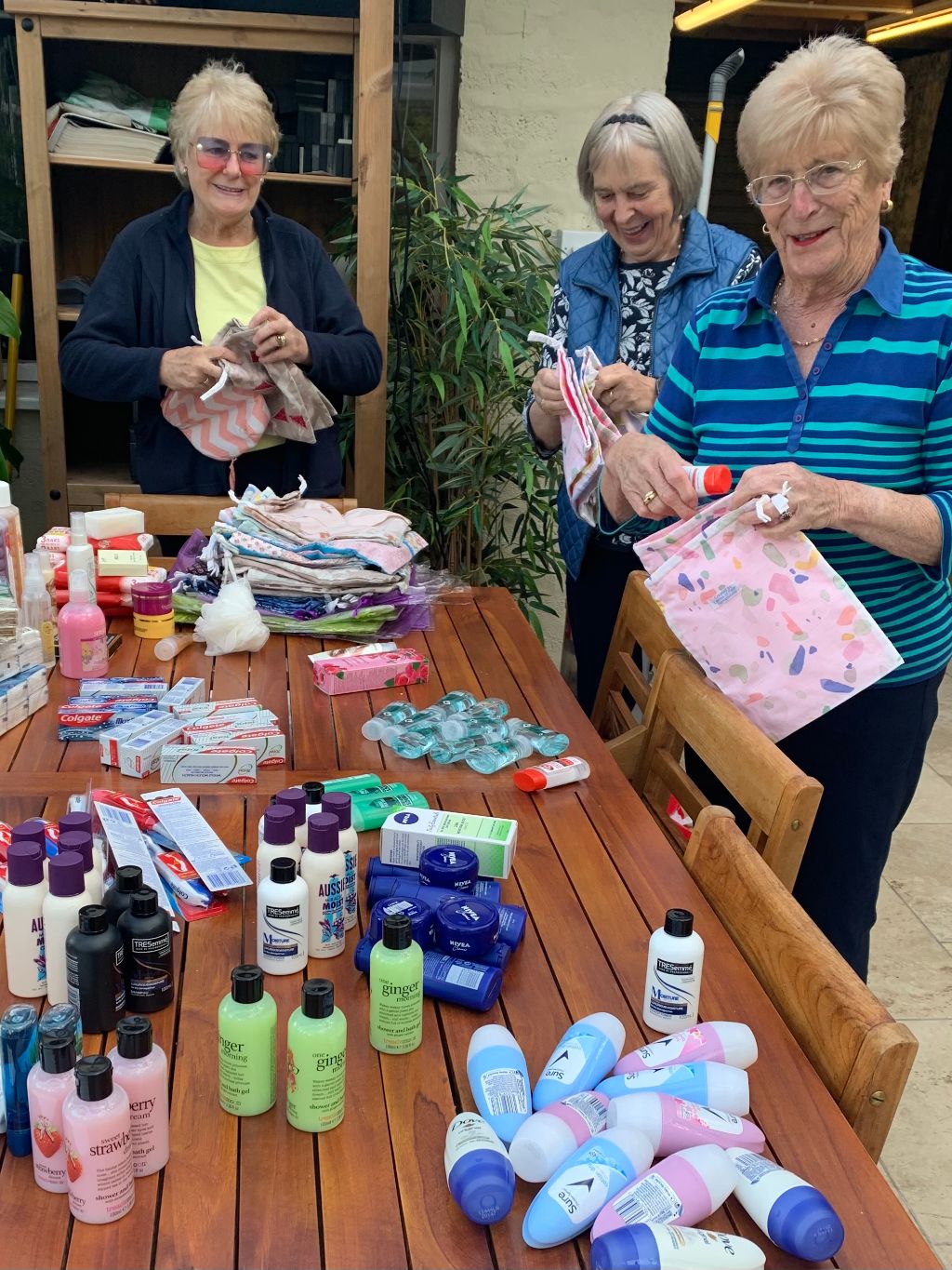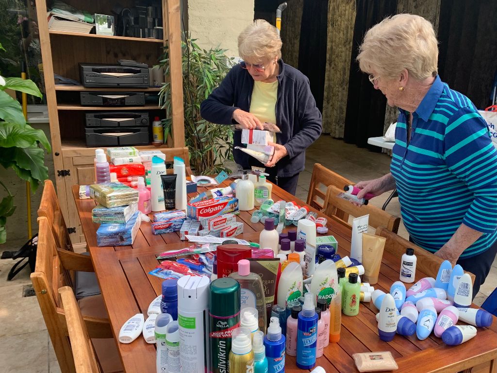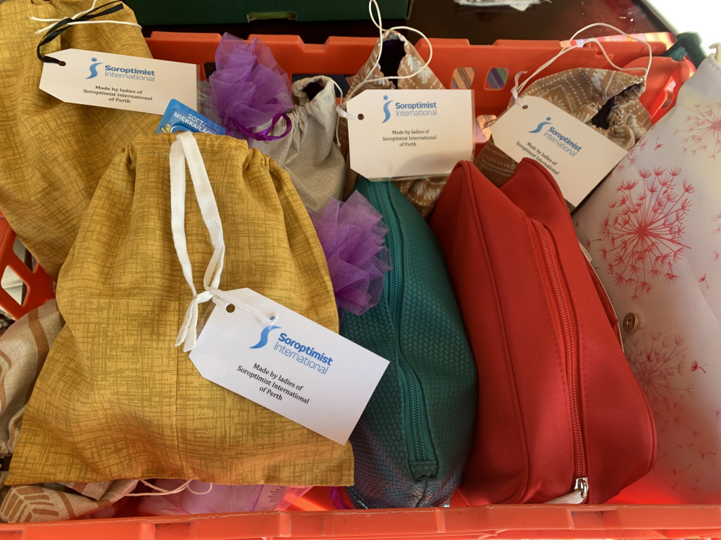 A number of SI Perth members met recently to fill around eighty toilet bags with toiletries donated by members. Some of the eighty bags are being gifted to RASAC, to be given out to women arriving traumatised at their Centre in Perth. Other bags will be given to Starter Packs customers, people in need who have been given a place to live and have very little to equip their new home. A good number of the toilet bags had been sewn by SI Perth members and were filled with essential toiletries and sanitary items, a very welcome gift for those receiving them.