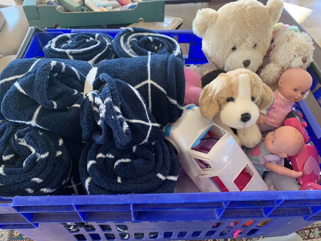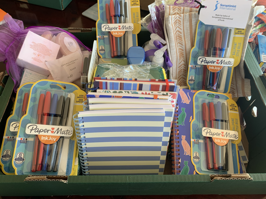 On 1st September, the Declared Day of Action in Afghanistan and following an appeal by Perth & Kinross Association of Voluntary Services (PKAVS), Gameeda Barnard and Lilian Murchison were delighted to drop off donated items from members of Soroptimist International of Perth as well as members of Blairgowrie community. Toiletries, toys and stationery items were handed over to be distributed to migrants arriving in Perth and Kinross area. The photos above show some of our donated items.
