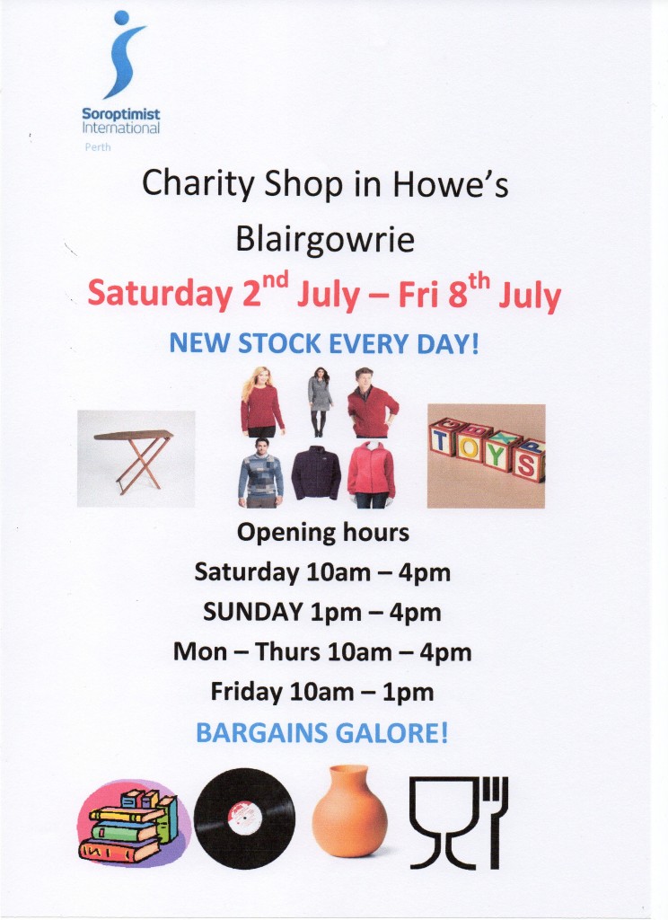SI Perth are having a charity shop from Saturday 2nd July – Friday 8th July.