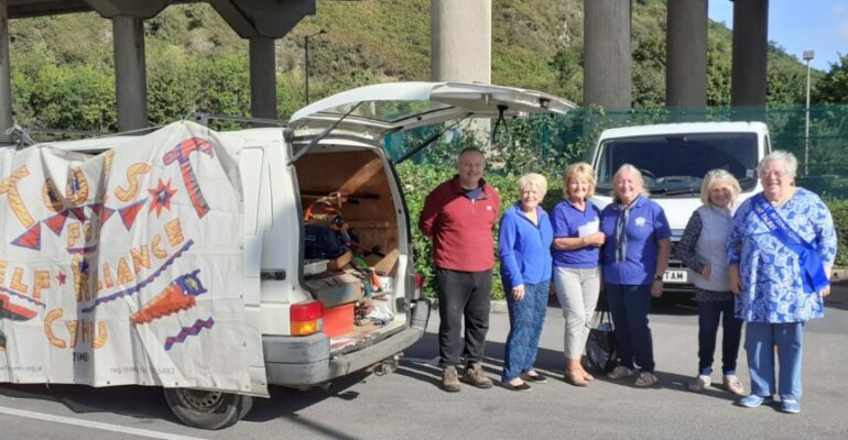 On two Saturdays in September our members banded together to undertake a leaflet drop, (1st Saturday) followed by a collection, (3rd Saturday) in aid of Tools for Self-Reliance Cymru. One of our clubs ongoing charity link projects. Tools for Self-Reliance is a UK-based charitable organisation that works to empower artisans and tradespeople in developing countries, such as Africa. It does this by providing them with tools, skills, and training. The charity was founded in 1979 and operates on the principle that; poverty can be tackled more effectively by supporting people to help themselves. Our collection drive was Headed by Phil Pope the charities workshop supervisor and equipment maintenance specialist, (and all-round hard worker). Our members collected a huge van load of old tools, sewing machines, textiles etc. The items will be refurbished and utilised in one of two ways. Most are sent on to start