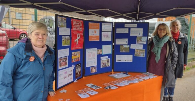 On Sunday 27 November members of the Club stood alongside members of the Mothers’ Union, Diocese of Salisbury as part of the UN’s annual #Orangetheworld 16 Days of Activism on Violence Against Women. United by a common desire to see an end to violence against women – they were there to raise awareness of domestic abuse and the many other manifestations of violence against women and girls. There was a lot of interest from Festive Market goers; young visitors were particularly keen on the orange and purple balloons handed out and the fresh fruit handed out to both adults and children were ice breakers to a series of conversations about domestic abuse and what we can all do to spot it in relationships and to stop it. “We are particularly grateful to local fruit sellers Central Fruits and Simply Fruit who supported us with fresh