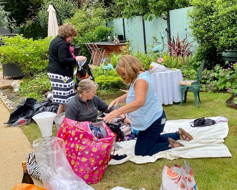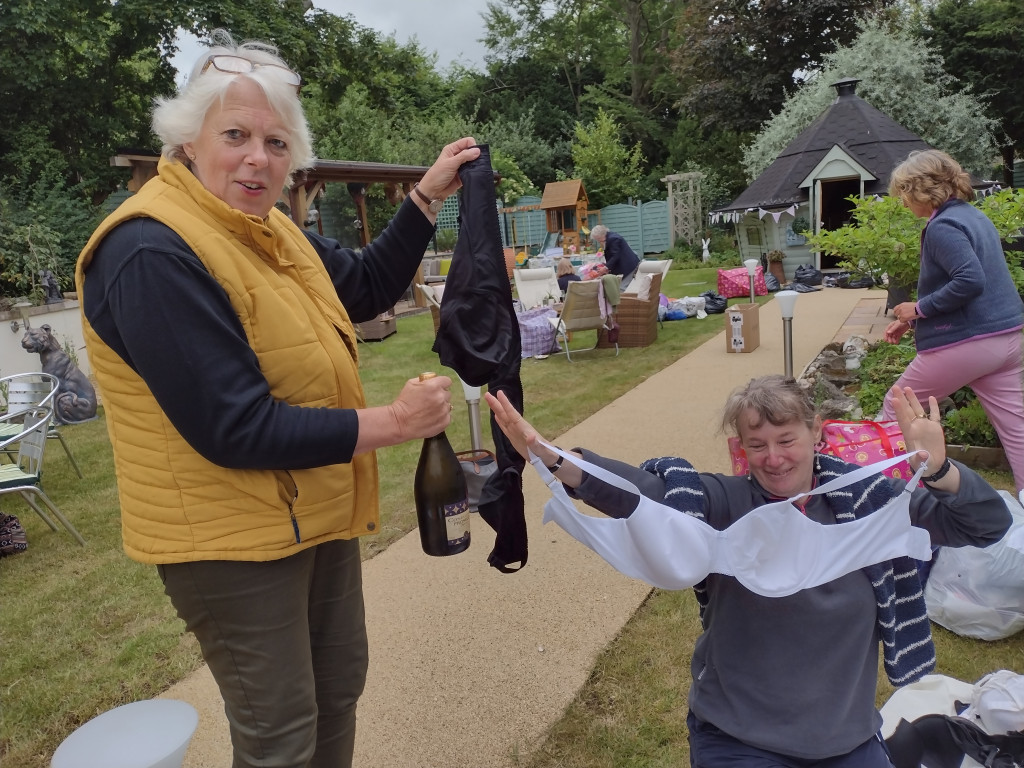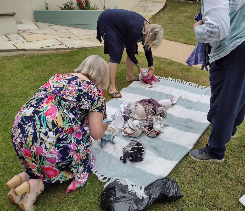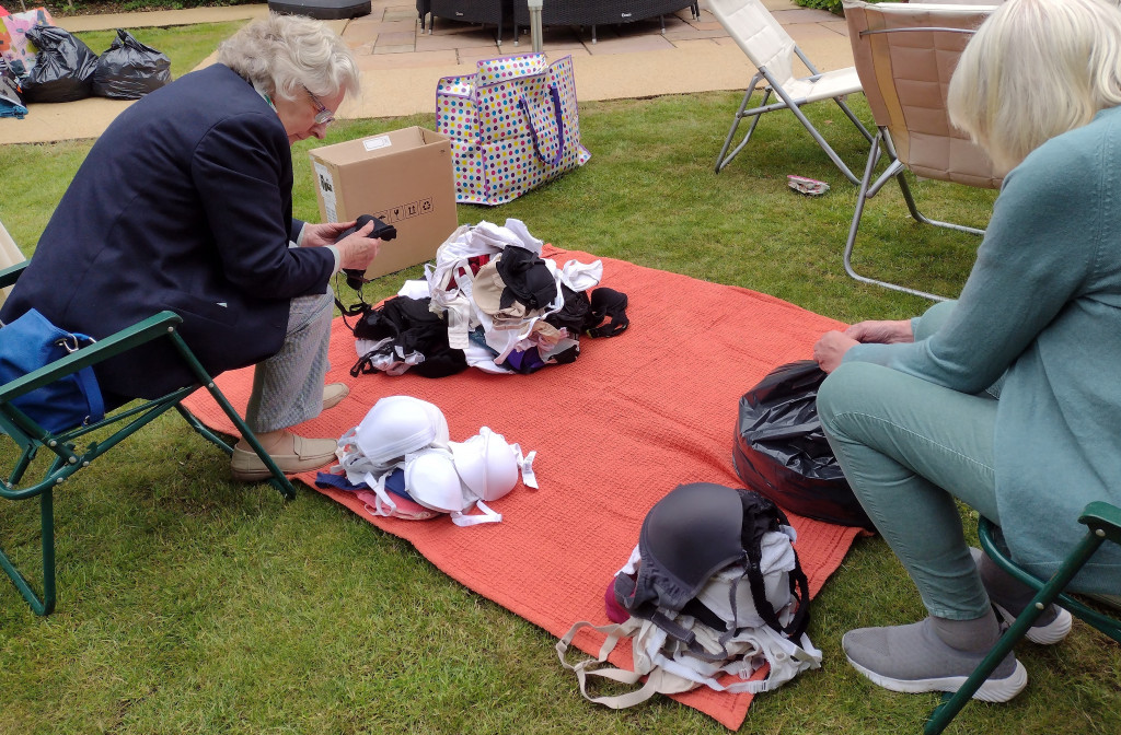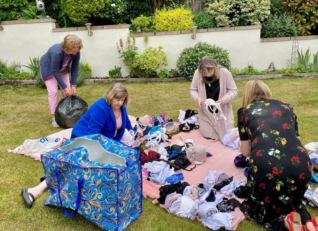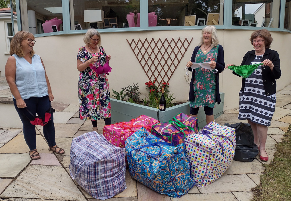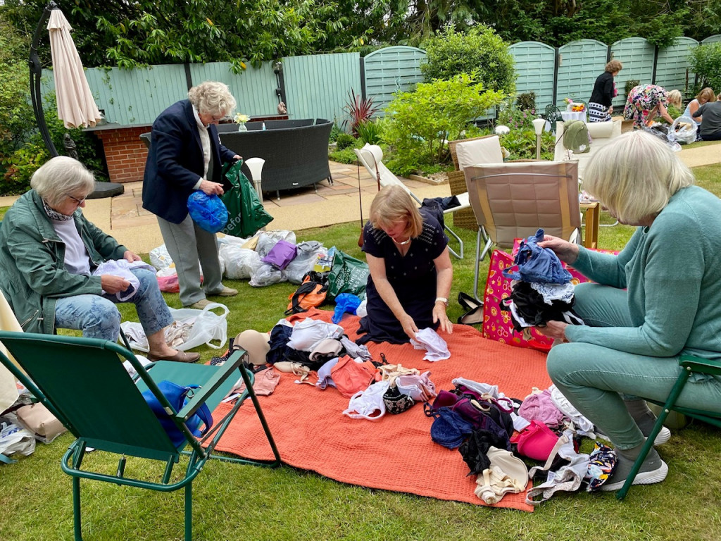 Club members met up in Club Treasurer Bernie’s lovely garden for a social event with a purpose. Their mission? To sort, count and pack the hundreds of bra and knicker donations gathered from the generous ladies of Salisbury for shipping to Smalls for All. The donated pre-loved but lightly used bras and new knickers are shipped to a variety of areas in Africa, where, the charity has found, underwear gives women dignity and self worth and can protect them from assault.