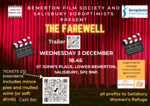 Our other main event will be a film night in aid of Salisbury Women’s Refuge.