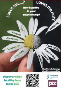 This year we have decided to support the theme of Healthy Relationships, chosen by our local county rather than the national SIGBI theme of online abuse. This theme is being given publicity by an alliance of organisations throughout the county of Wiltshire: FearFree, Society Without Abuse, Wiltshire Police, Wiltshire Council, Paragon, Swindon Borough Council, OPCC Wiltshire, The You Trust
