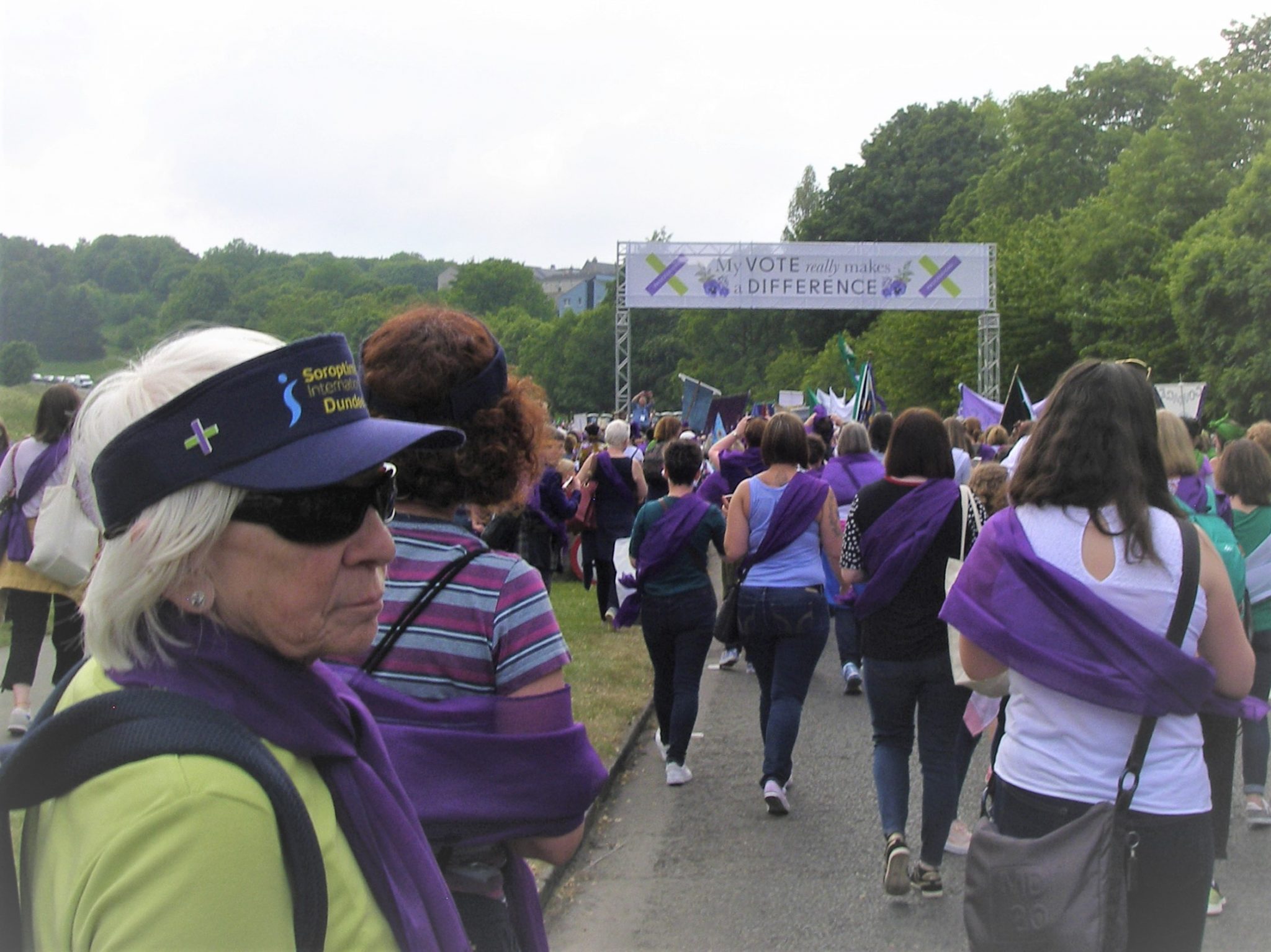 Regional President Prue and other SI Dundee members, Kate and Norma, and Fiona joined Soroptimists from across Scotland in the march.