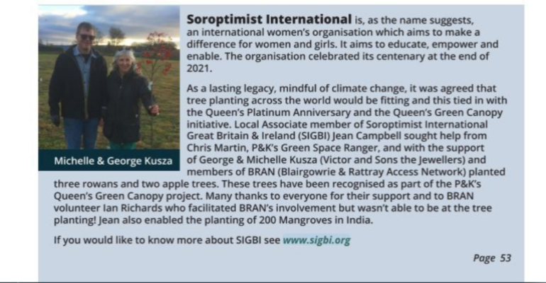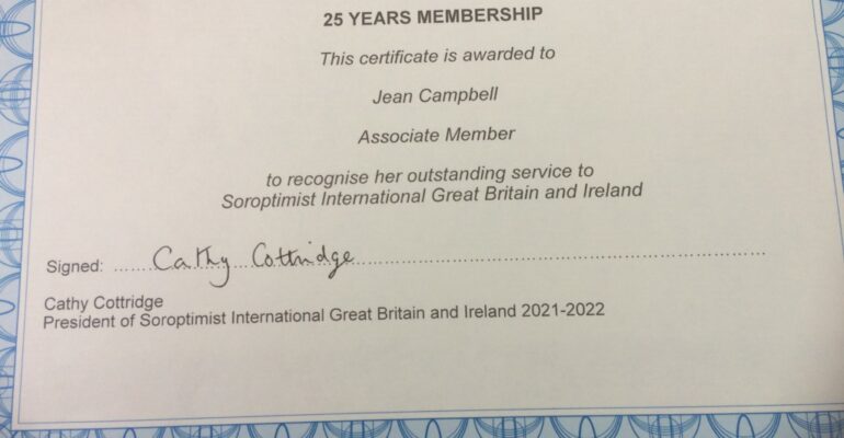 Members of Soroptimist International of Perth are delighted to share the news with you that one of their members, Pat Carruthers, has been awarded Honorary Membership of Soroptimist International of Great Britain and Ireland (SIGBI), a well deserved honour and we congratulate Pat. Pat, a qualified Chartered Accountant, joined Perth Soroptimists in 1988 and has served as Club President and Treasurer with SI Perth (a position she still holds), Region President and Treasurer of Scotland North Region, Treasurer of Soroptimist International of Great Britain and Ireland, as well as Soroptimist International, a worldwide organisation. Pat also served as a Trustee of the Diamond Education Grant a term of office which ended at the SIGBI conference in November 2023.