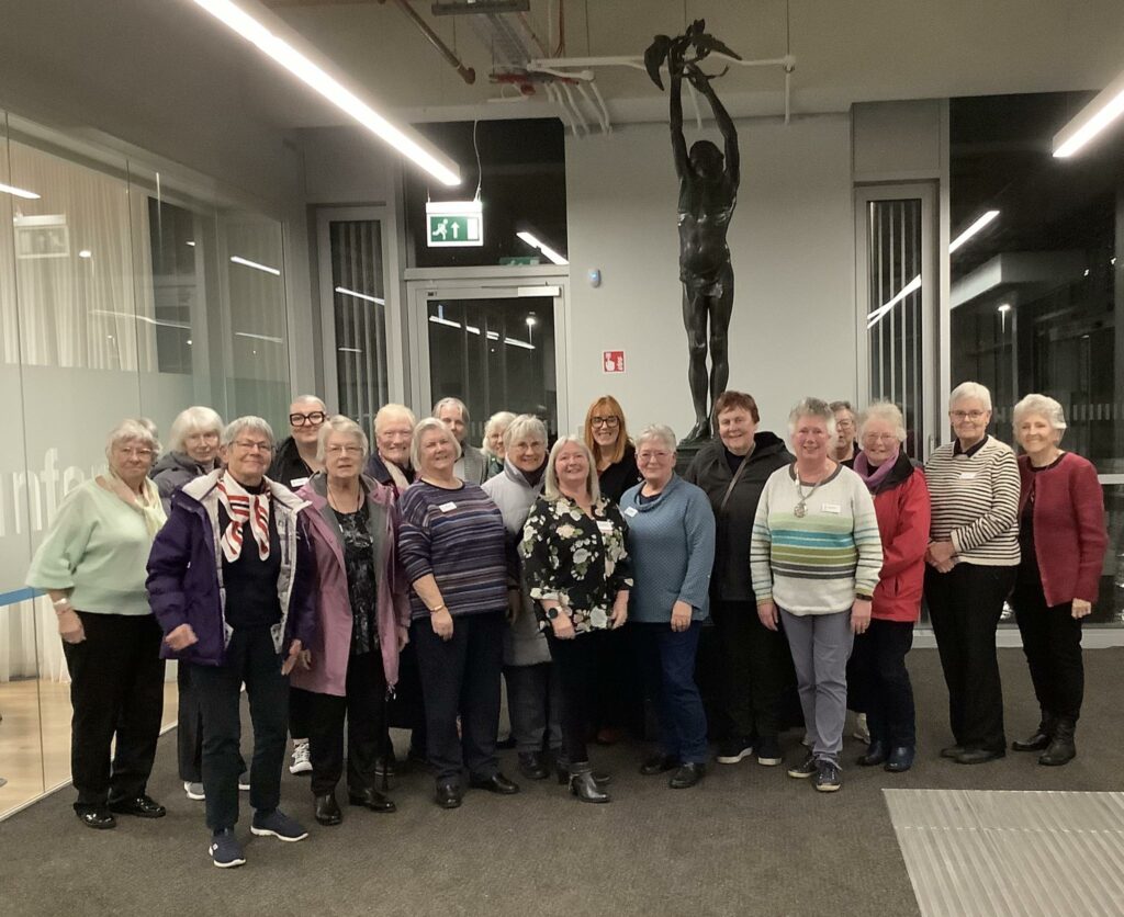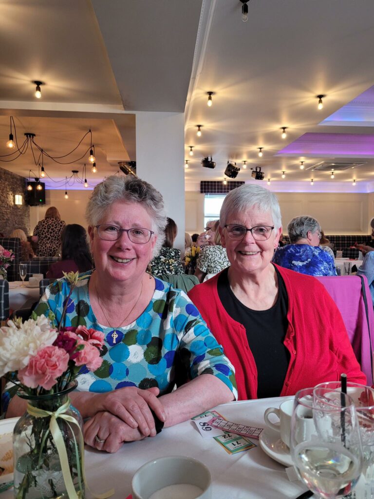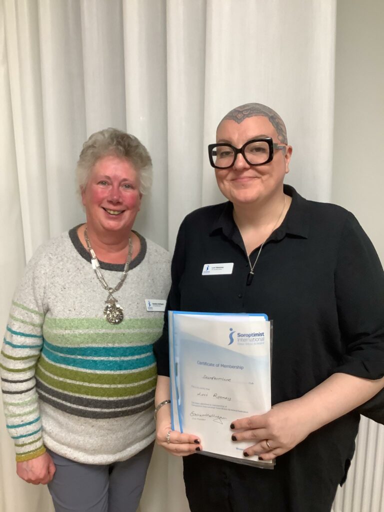 SI Dunfermline President Estelle welcoming new member Lori, from Aberlour Children’s Charity, 13 11 2025. Lori has joined on first Club meeting in new venue described below.