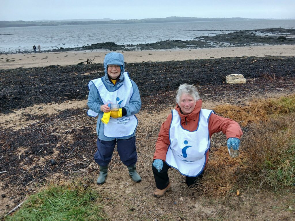 SI Dunfermline members Mary and Estelle on Nurdle Hunt, Limekilns, 26 10 2025.