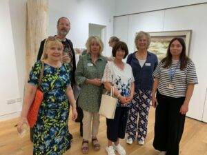 SI Sevenoaks were invited to attend a preview of Sevenoaks Library Museum’s exhibition of Treen on Wednesday 6th August. We enjoyed wine and nibbles, and a chance to see the items in the exhibition – Treen means ‘of wood’. The best item was a scarred but highly polished dark oak door which had come from the old police station! We had a chance to chat with Sevenoaks Town Councillors and with a young local artist, Adam Jaaback, who also played in a band with our member Tracey. Our picture shows members Tracey Kemp, Julie Walder, Carole Morrisson and Sandie Higgs with artist Adam Jaaback behind us, and Sevenoaks Museum Curator Liz Botterill on the right. The exhibition will run until 5th September.