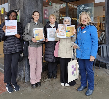 Sheffield Rock Choir enlivened Sheffield Winter Gardens to raise awareness of Women’s International Day.  SI Sheffield’s stall distributed publicity leaflets aimed at raising awareness of violence against women. King Edward’s School (Share Our Skills) girls joined our members manning our stall. Thanks to Eva for organising such an effective event.