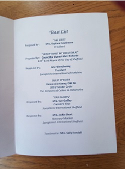 Our Charter Lunch at Tapton was well attended.Pesident Daphne opened the proceedings with a welcome to all guests (see below) and lit friendship candles, Linda said grace prior to the efficent serving of an excellent meal. Sally acted as admirable toast master while everyone was inpired by Dame Julie Denny’s dymanic speech.