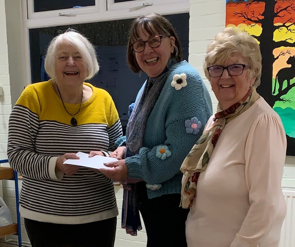 The photographs show some of the donations and Club President Irene presenting a cheque for £500.