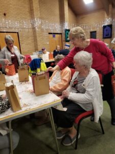 At the club’s December meeting members packed Christmas bags. The completed bags will be donated to those from the local Re-Engage groups that we support. It is a fun activity after a business meeting, and was enjoyed by all present. (The picture of us doing this last year was included in the montage at conference in Birmingham)