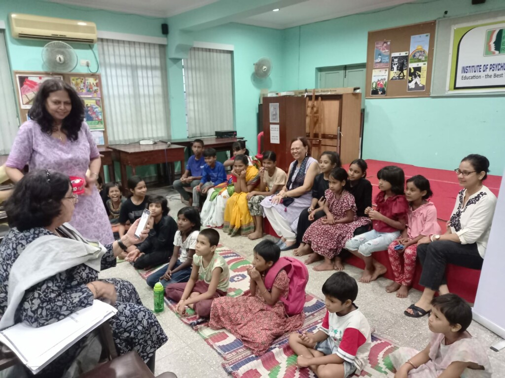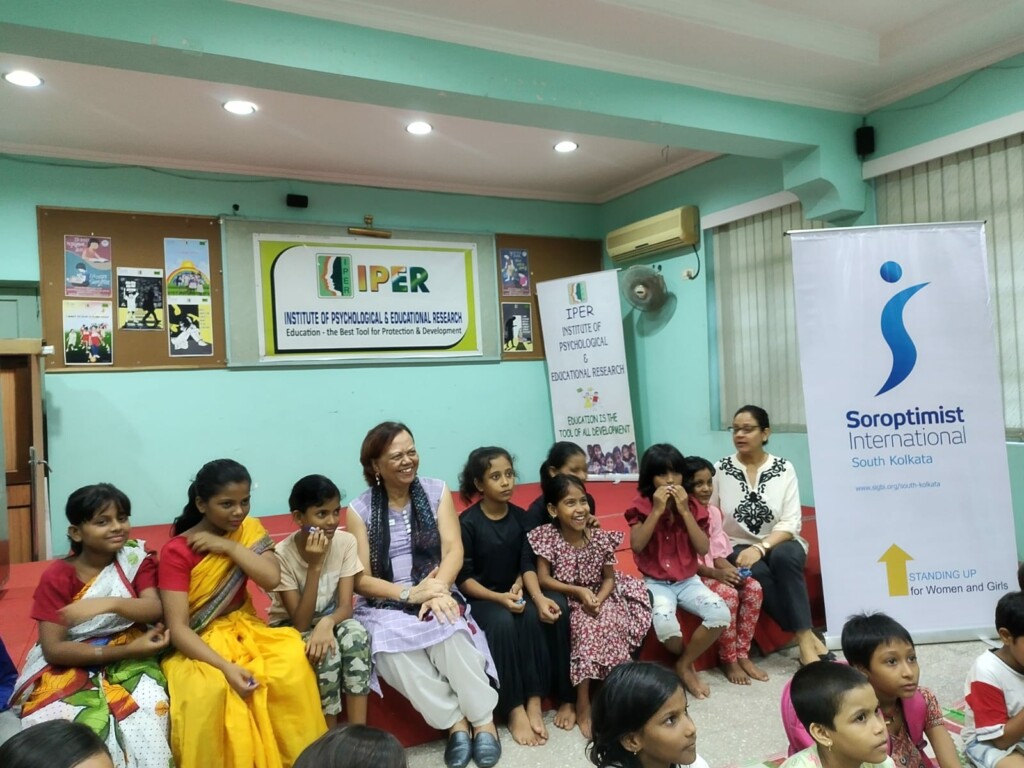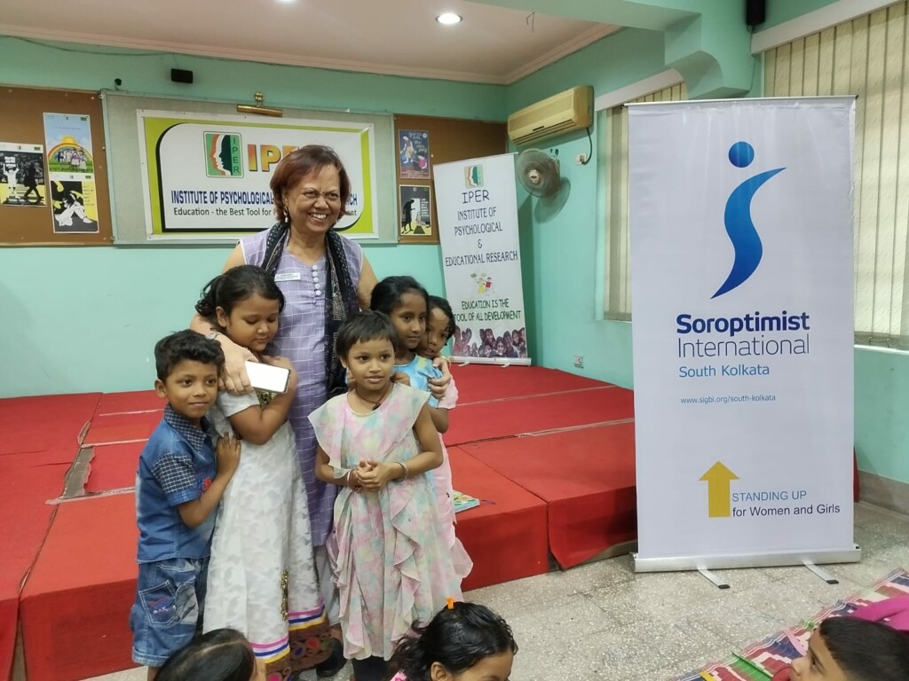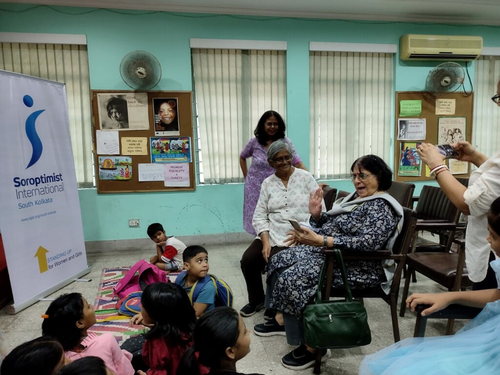 SISK members Punam, Ruma, Anita Nan, Ranjana, Shukla and Bijli with her two hats of SISK Charter President and IPER Director were present. Chocolates from Ruma Sen was a big hit with the children.