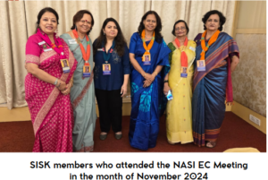 SISK President Shukla Chattopadhyay along with Rumela Mookherjee, Reshma Narwani, Ruma Sen, Bhaswati Biswas and Anuradha Kanjilal attended the NASI EC meeting and installation in the month of November at Chennai.