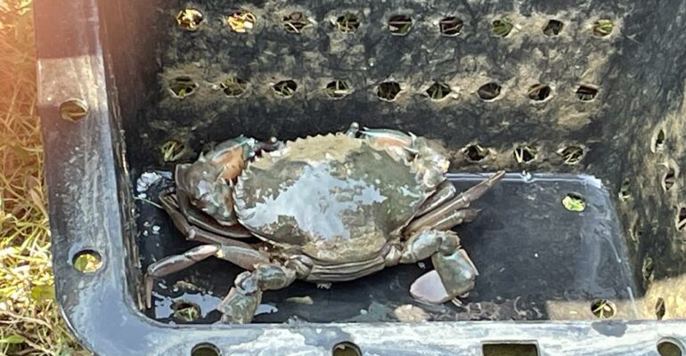On the 23rd December 2022, 7 members of SISK made a trip to Sajnekhali to follow up on the progress of our Crab Cultivation Project. We needed to go soon as Saurav had already informed us that the crabs would soon be put to market. We reached Gosaba after crossing the R. Baidya. It took another short ride on a Toto, through a verdant rural landscape, and a walk over a perilous rickety bamboo bridge before we reached the spot. We found the whole-lot of 100 boxes each containing a single crab floating on a makeshift platform in a pond nearby. They have been recently shifted from the creek where they were earlier located. The crabs have attained quite a good size, each supposed to weigh from 250 to 300 grams. They will be put on the market in January. Crabs sell at a very