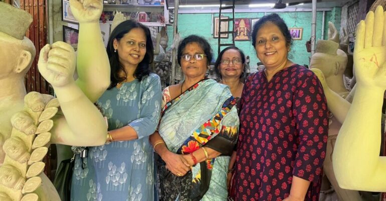 A days outing to Kumartoli with the interns, Vrinda and Rajnita from Symbiosis, Pune. This place is a traditional potters quarter in North Kolkata, West Bengal. The potters came here during British Era to make idols of Goddesses and this tradition continues till date. The interns interviewed the women workers here. The women spoke about their hardships and how they overcame all barriers and are now successful business women. The interns will be making a short film on women empowerment focusing on Goddess Durga and the women workers.