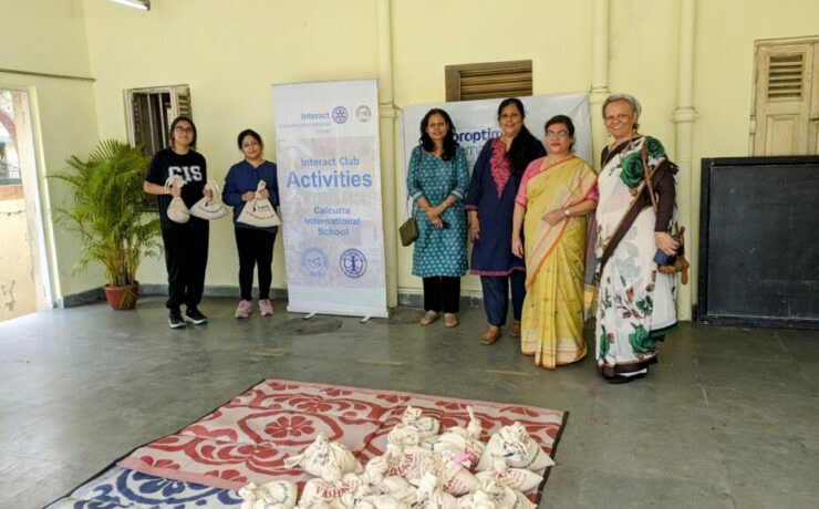 Project “Fistful of Grain” saw its revival this year after it was discontinued due to covid. This year around 60 bags were distributed to the students of the interact club of Calcutta International School. Students will put a handful of grains every day, which will