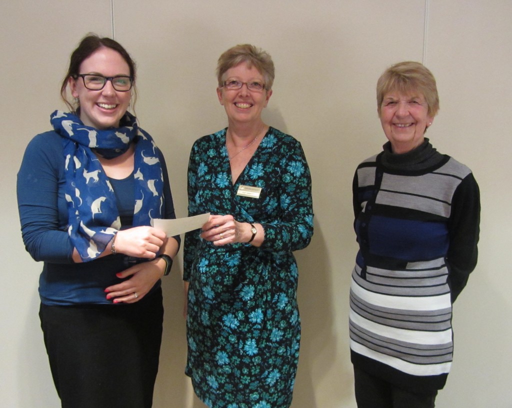 Joint presidents of SI Winchester & District, Pat and Jenny, present Chloe Jay with her £100 prize as the winner of our Quiz in aid of food bags for Trinity House. Chloe had the highest score with 112 out of 127 – but she told us she is a seasoned quiz winner!