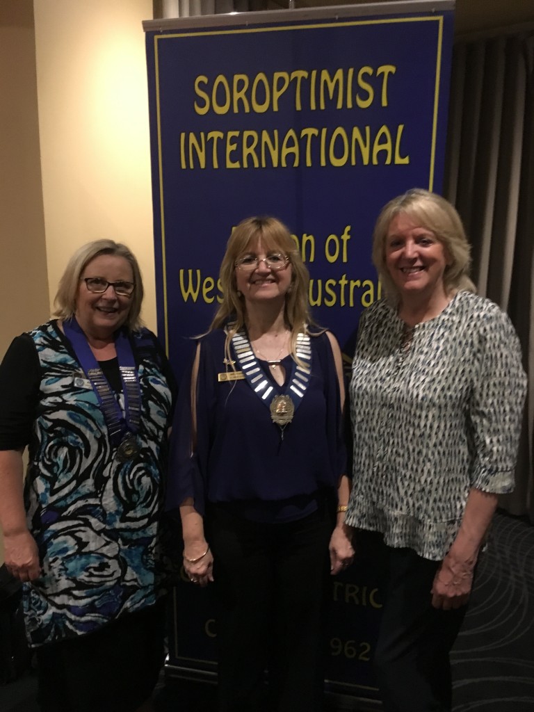 Shirley attended the 55th Charter Dinner of SI Cannington and District (Perth). Shirley says…”I was honoured to be invited to share this wonderful anniversary with such a warm and welcoming group.”                                                                                                                                                                          In the photo from left to right are Anne Allen (SI Western Australia Regional President), Tamara Trute McKiernan (SI Cannington President).and Shirley.