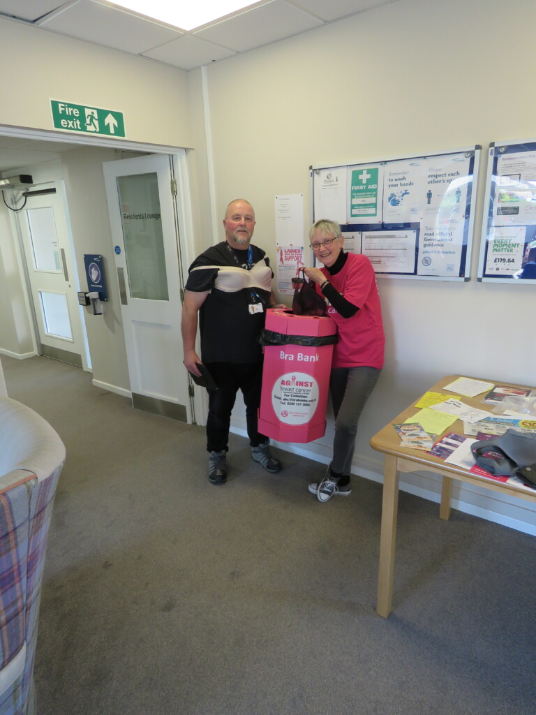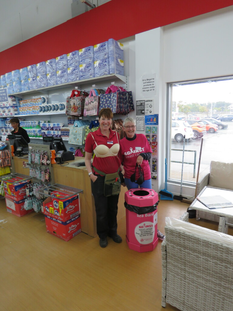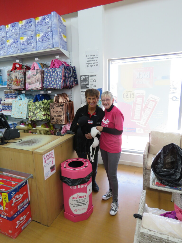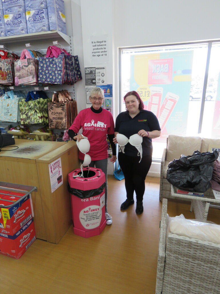 Thanks to member Bernie Reynolds for spearheading the idea, liaising with the businesses and delivering the pink bra banks.