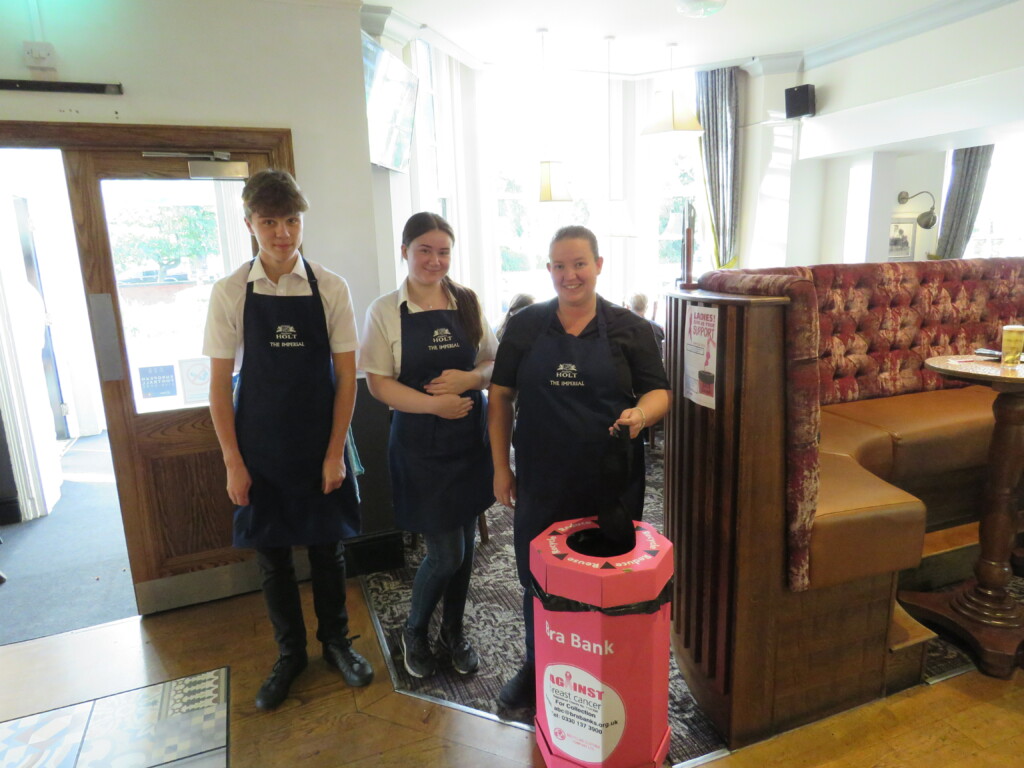 With grateful thanks to the Imperial, we hosted an informal gathering of our bra bank ‘hosts’ with SI Southport President Carol Cookson, Bernie Reynolds, who instigated the project, and other members of the club. Bernie explained the background to the project and the wonderful contribution made by local businesses and organsiations to champion and promote the cause.