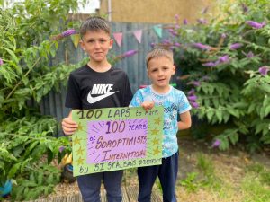 One of our Members, Louise Marron, had to self-isolate due to COVID so she did laps of her garden with her “Soroptisons” – pictured here with the banner they made for the occasion – well done to Louise and her lovely boys! Louise also sent us these two lovely videos: