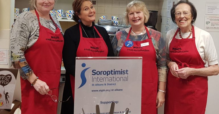 St Peter’s Church has recently refurbished their toilets and installed a new disabled one. Reverand Mark Dearnley, Vicar of St Peter’s and Natalie Liley, Churchwarden are pictured standing in the new disabled toilet holding the twinning certificates. They had seen the news item in the Herts Ad in August and so it seemed the perfect opportunity to join the Soroptimist International St Albans and District “St Albans Toilet Twinned City” campaign. For each paired toilet a donation of £60 was made to the Toilet Twinning Charity www.toilettwinning.org The charity funds projects to help build basic toilets and provide access to clean water in poor communities, maintaining a focus on the importance of hygiene education and community-led action in the improvement of sanitation – “flushing away poverty one loo at a time”. Jane Slatter from the St Albans Soroptimists said “we started this project on World