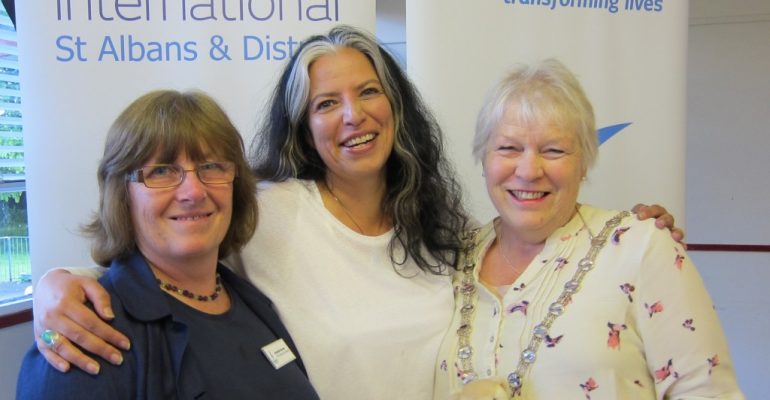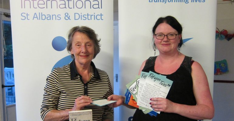 Felicity Dick a Trustee of Gatwick Detainees Welfare Group www.gdwg.org.uk spoke to the Club about the project Refugee Tales. The Refugee Tales Walk will be launched this year in St Albans on Friday, 6 July. It is like a Modern Day Canterbury Tales and will end in Westminster on 11 July. Felicity is pictured here accepting a donation from our President-Elect Katherine Clark. On Sat 7 July we are welcome to join the walk from St Albans to Hertford (or part of it) – please click on the links below for more details and email refugeetales@gdwg.org.uk if you’d like to join in http://refugeetales.org/the-walk-of-2018/ and http://refugeetales.org/book-for-refugee-tales-walk-2018/ On the evening of Sat 7 July there is an event in Hertford that sounds lovely – just click on the link below if you want to attend http://refugeetales.org/wp-content/uploads/2018/05/RefTales_Hertford_Poster_A4_small.pdf Felicity spoke in some depth about the work of Gatwick Detainees Welfare Group. They work