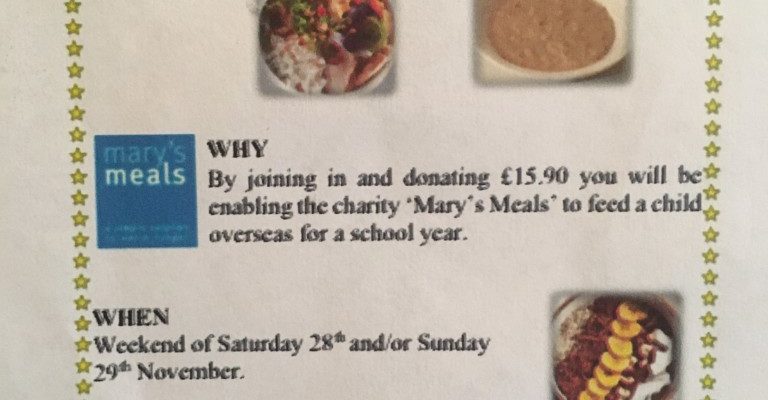 November 2020 No Charter Lunch but support for Mary’s Meals