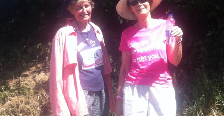 Jo and Jean stop off at Marshall point No 9 for a quick photo. Soroptimist Wendy was at her post. A very hot day for the ladies doing the race!