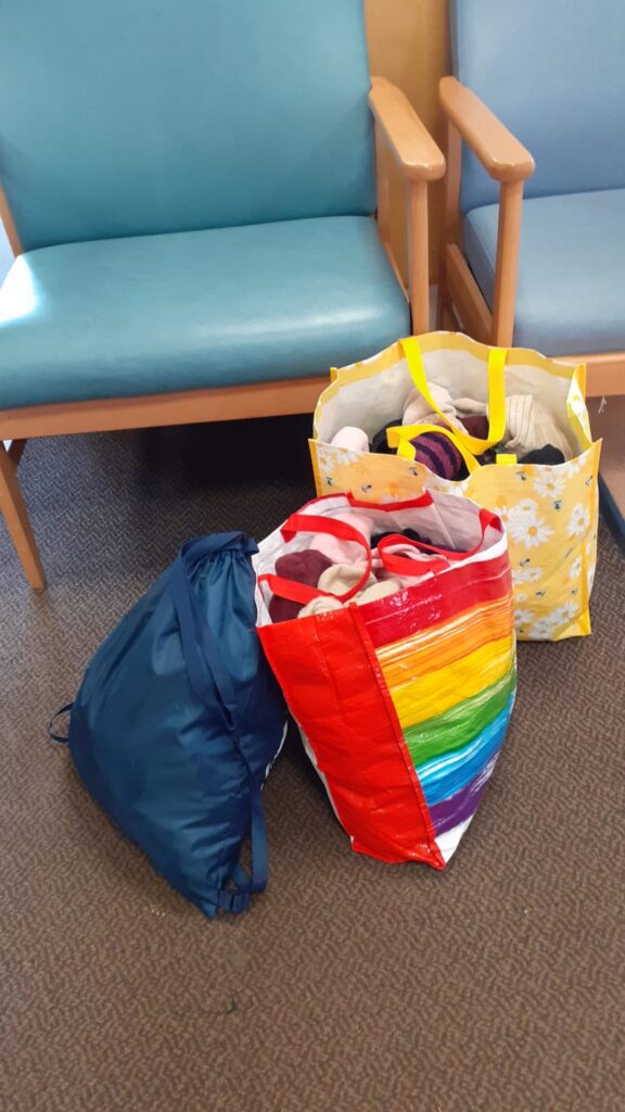 North Tees Hospital A & E asked us to help with providing socks for patients who need them on admission, discharge or sometimes without being admitted. Club members brought socks to the September meeting and Val Tait delivered 201 pairs to the hospital.