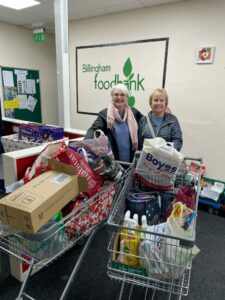 Food Bank November Published on: November 26, 2025 Published in: Uncategorized Sue and Liz delivered two trolleys full of non perishable food items, toiletries and cleaning products to the Billingham and Stockton Food Bank.