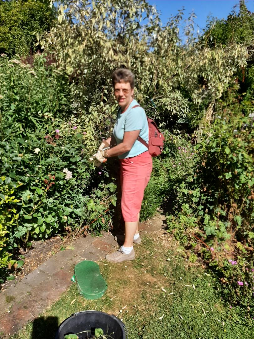 Despite the heat 5 Club members and 2 friends met at 10am on Saturday 16th and spent over 2 hours watering, weeding, deadheading and tidying! Member Jackie Webb armed herself with a wheel barrow and collected armfuls of weeds and our chief ‘deadheader’ was Gillian Reed who commented, “everything looks tidier and re-flowers if you deadhead the faded blooms!”