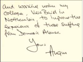 The Wiltshire Police and Crime Commissioner, Angus Macpherson, recently sent personal letters of thanks to 3 members of Swindon Soroptimist Club, after the completion of a 3 month project observing Domestic Abuse cases in Swindon and Chippenham courts.