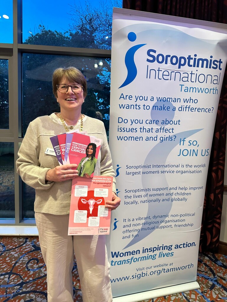 The Eve Appeal has been chosen by incoming President Gill to be the President’s Charity to receive a portion of monies raised by SI Tamworth from April 2025 until the end March 2026. Other monies raised will be distributed to help support selected local charities that help women and girls.