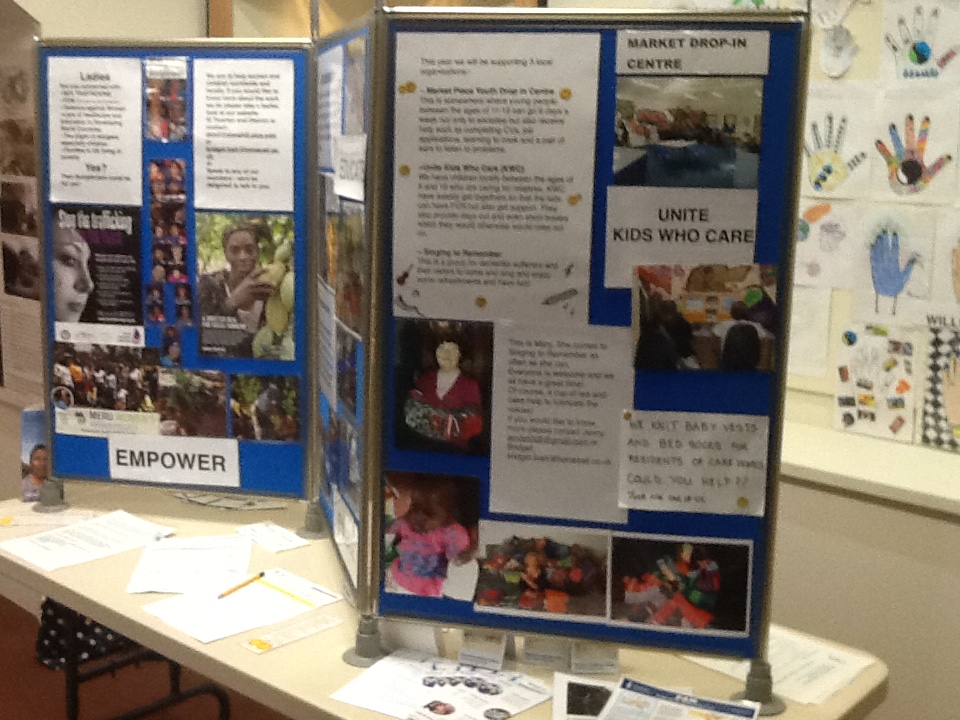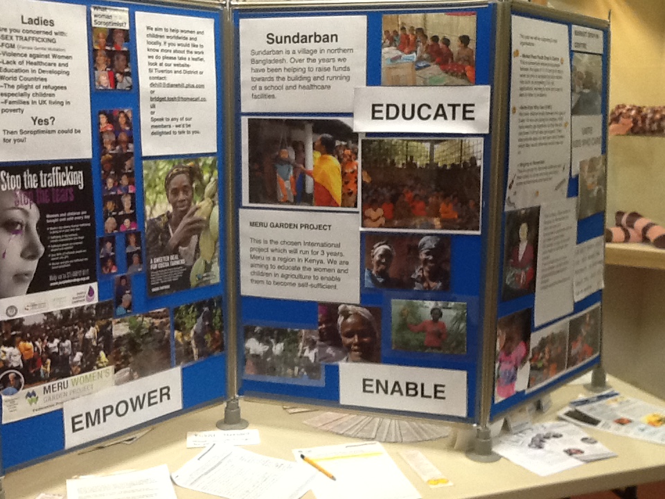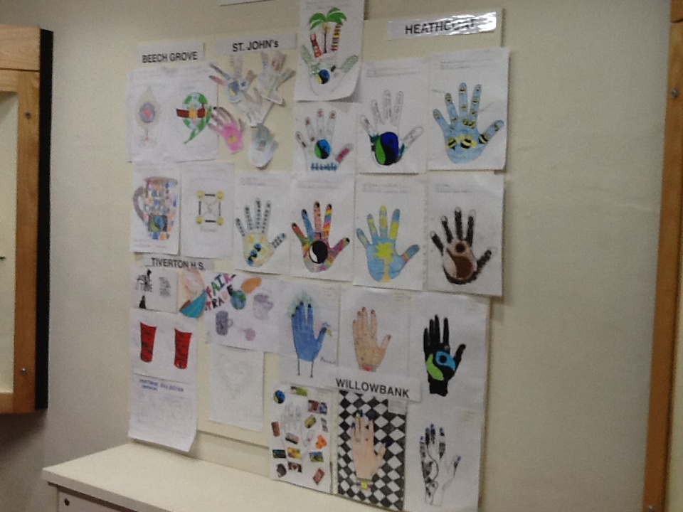 Following a lovely display in the library of the Club and our work, Jenny and Marion visited the schools that entered the Fairtrade competition to make presentations of prizes and certificates. Pupils from Willowbank School; St Johns School; Tiverton High School; Beech Grove School and Heathcoat School submitted a fantastic range of decorated hands and posters promoting Fairtrade month and Rosa kindly undertook the unenviable task of judging the entries.