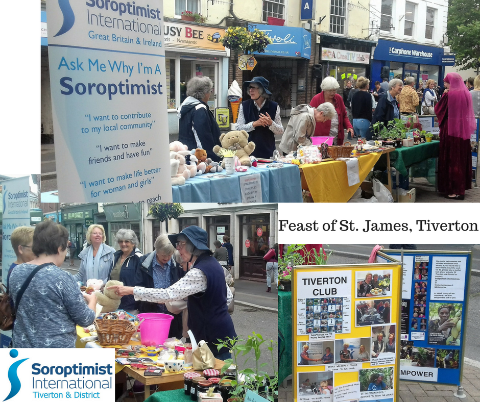 The rain held off for the annual St James Medieval Fayre held in Tiverton town centre. Surrounded by other stalls and lots of entertainment, the SI Tiverton and District Stall and display attracted lots of attention from passer-by’s. Over £160 was raised and interest was shown by 3 ladies who were given information about the benefits of Club membership.