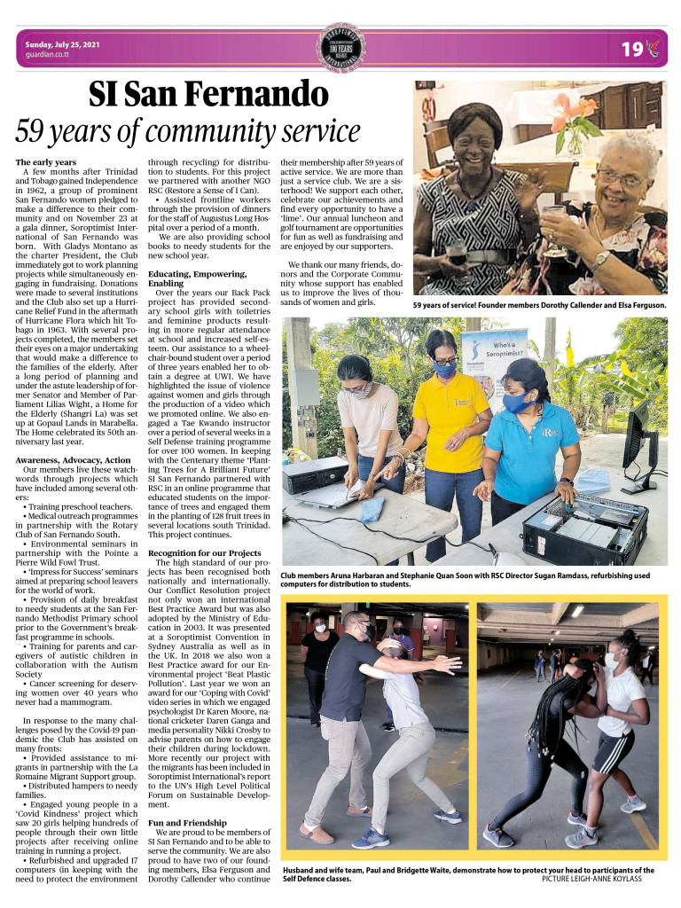 Soroptimist International of San Fernando was chartered on 23 November 1962 with 18 members. At present the club has forty-four (44) members, two of whom are founder members.
