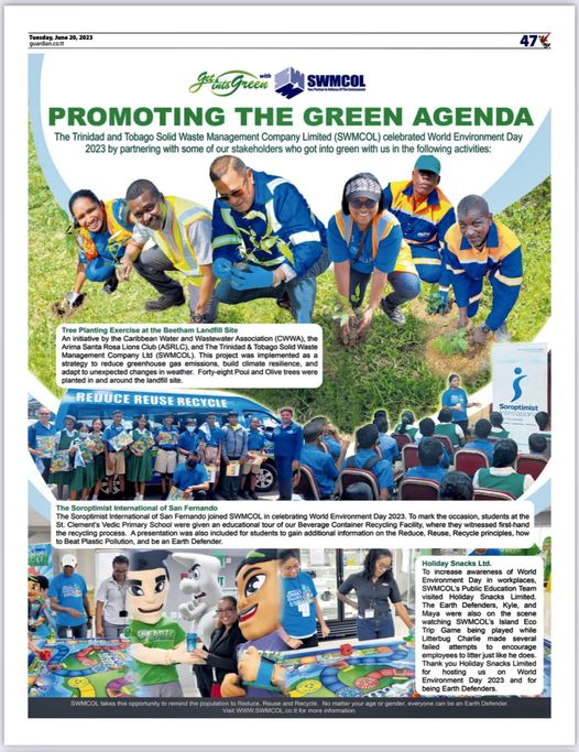 SI San Fernando wishes to thank the Solid Waste Management Company Limited (SWMCOL) for partnering with us in educating the Std 5 students of St Clement’s Vedic Primary School on the importance of recycling plastic waste.